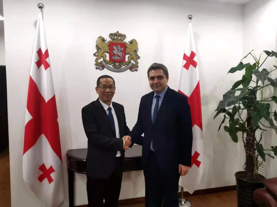 当日,格昇昌董事长乔文东、管鑫董事长汤晓荣在格鲁吉亚葡萄酒(中国)推广中心负责人黄宇彤的陪同下拜访了格鲁吉亚驻华大使阿尔奇尔·卡岚迪亚先生,就格鲁吉亚葡萄酒在新疆地区和浙江地区的文化推广进行会谈。