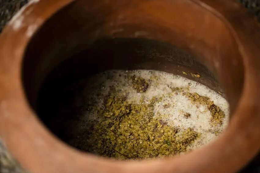 在卡赫基,通常在压榨槽内将葡萄压榨成汁并保持葡萄籽和梗的完整,再将葡萄汁、皮渣和梗导入深埋地下的陶罐中进行发酵,每天搅拌来让葡萄汁、葡萄皮以及发酵后的沉淀物充分混合,来得到更加饱满的酒体以及干水果风味的浓郁香气。
